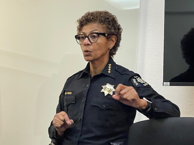 Cole-Tindall reiterated that the storefront deputy position will be filled, “we’re just looking at when.” The sheriff then mentioned the sales-tax increase that the Legislature is allowing localities to involve. The charging starts in January. If not for the tax, they would have had to cut 80 deputes – “you would have been gutted.” This covers the next two years but “2028-2029, that’s going to be a problem … Public safety is very expensive. Vehicles. Body cameras. Training.” She also noted that, for example, Burien pays them for police services – they have “customers who pay us for police service … 56 percent” of what they do is for “paying customers.” Those officers sometimes have access to different training and tools, if the contract city/tribe provides them.